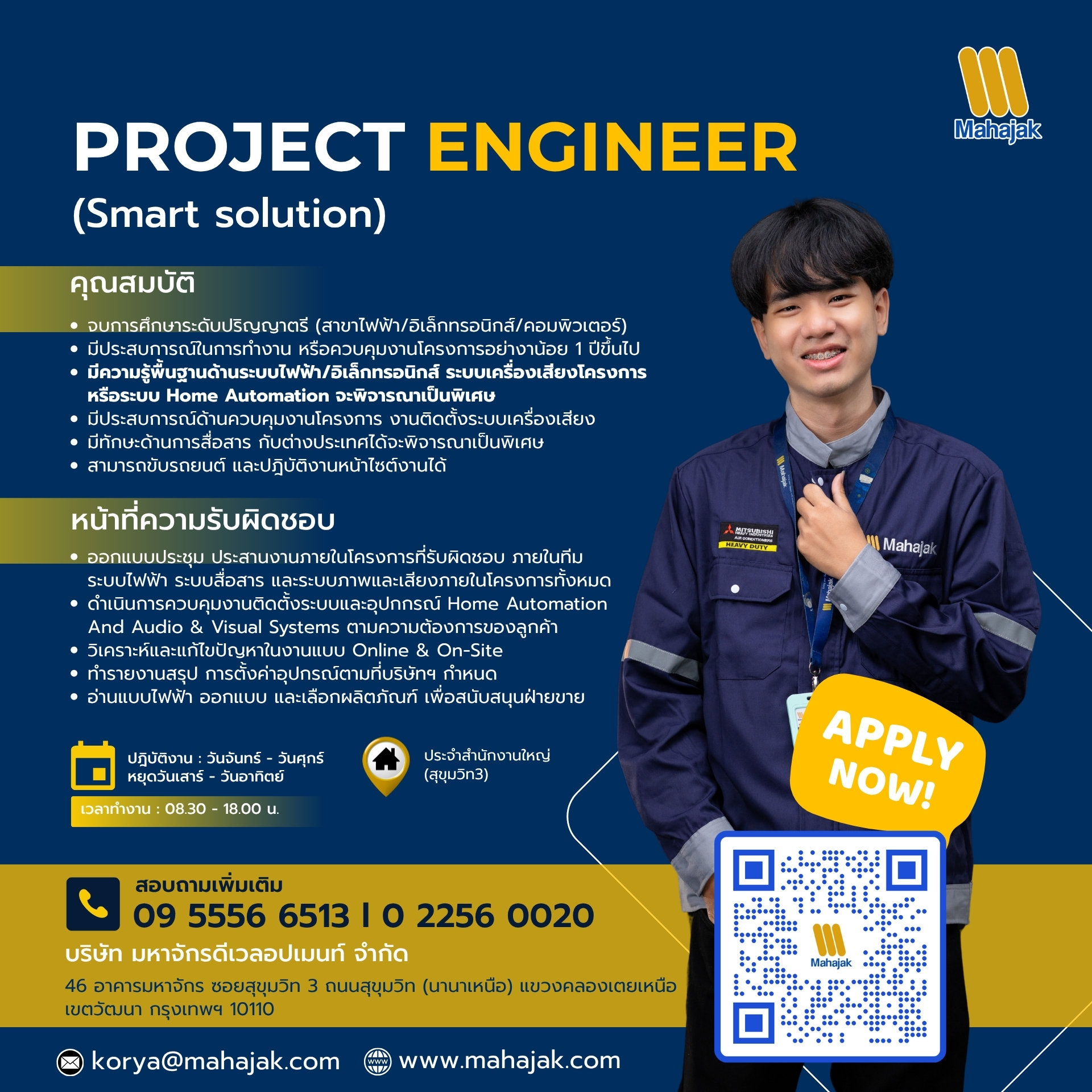 – มีประสบการณ์ในการทำงาน หรือควบคุมงานโครงการอย่างาน้อย 1 ปีขึ้นไป