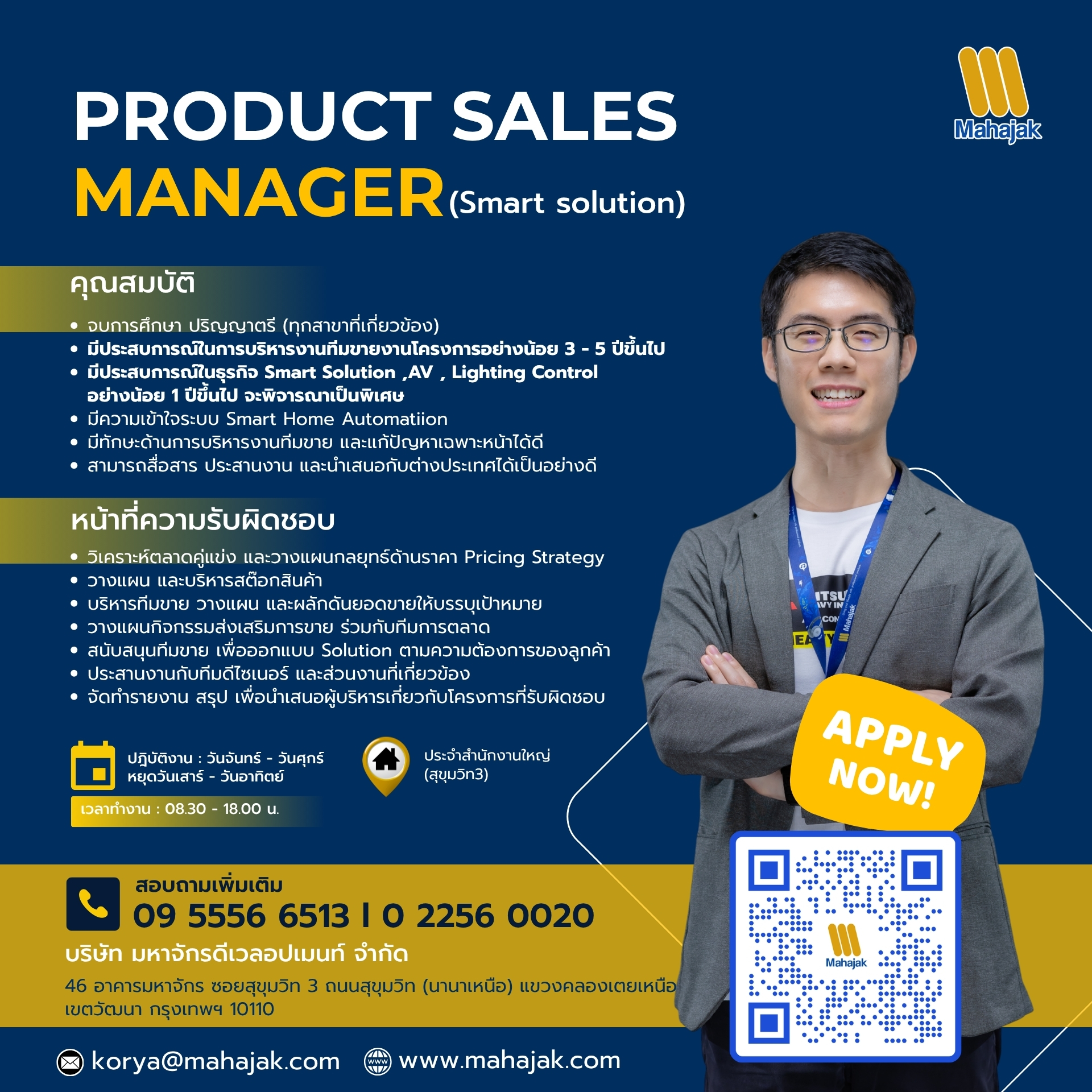 – มีประสบการณ์ในธุรกิจ Smart Solution ,AV , Lighting Control อย่างน้อย 1 ปีขึ้นไป จะพิจารณาเป็นพิเศษ